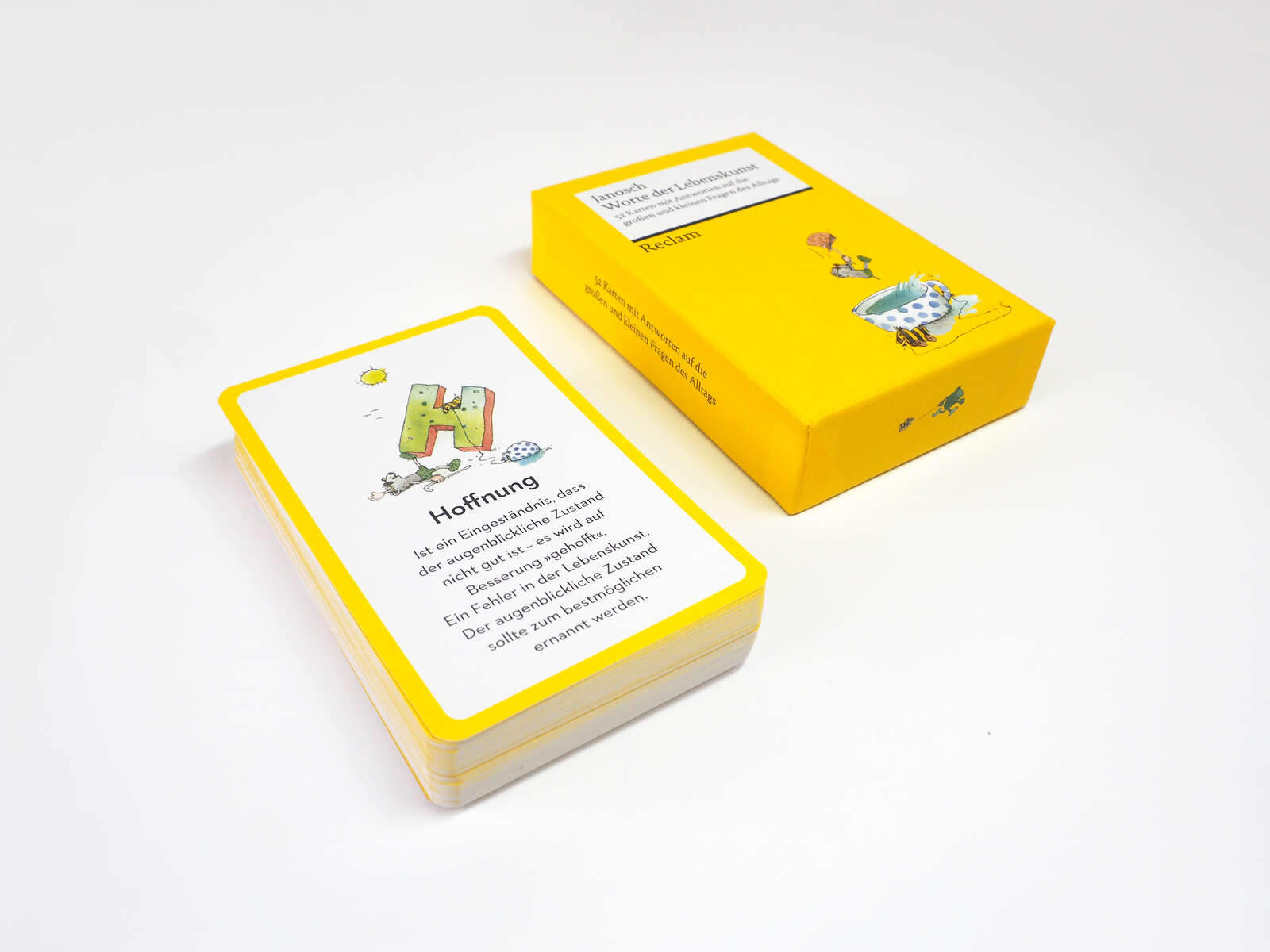 Von Tigerente, Tiger und Bär, Schnuddel oder Günter Kastenfrosch, bekannt aus seinen Geschichten wie »Post für den Tiger« und »Ich mach dich gesund, sagte der Bär« oder seiner Zeichentrickserie »Janoschs Traumstunde«, lernt man: Wer sich seine kreative Vorstellungskraft bewahrt, der braucht nicht viel, um glücklich zu sein. Zwischen 2013 und 2019 erschien die ZEITmagazin-Kolumne »Herr Wondrak«, in der Janosch mit dem schnauzbärtigen und schwarz-gelbe Latzhose tragenden Wondrak auf gewohnt liebevolle und augenzwinkernde Weise Leserfragen beantwortet. Seit 2021 mischt sich Janosch mit »Wondrak für alle Lebenslagen« und vielen weiteren Titeln unter die Klassiker von Reclams Universal-Bibliothek.